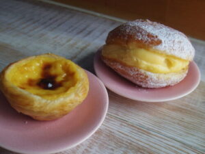 カステラドパウロの25日限定のカスタードドーナツとパステスデナタ。