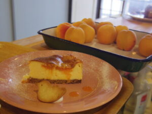 この時期にしか出回らない果物で、しかも関西ではあまり店頭に並ばない果物、アンズ。私は大好きなので、この短い時期に手に入った時には、色々と使いたい、っと今週はチーズケーキとココナッツのケーキに使いました。