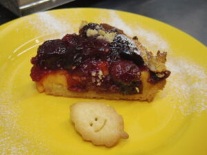 チェリーとカスタードの焼きタルト、今日一番ご注文が多かったです。アメリカンチェリーを1粒1粒、半割にして種を取ってから煮て、カスタードの上に乗せてから焼いてます。