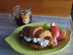 自作のクロワッサンで粒あんマスカルポーネクリームサンド、シャインマスカットとネクタリン。マスカルポーネクリームと粒あんでトーストやりたかったのに、厚切り食パンが無い!って事で自作のクロワッサンでサンドにしました。美味しいに決まってるー。