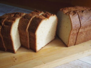 袋詰めの焼き菓子は、和三盆ケーキ、ショートブレッド、バタークッキー、チョコアーモンドクッキー、オートミールクッキー、チーズと黒コショウのクッキー、フロランタンです。追加で色々焼いていきます。写真は和三盆ケーキ。暑いのでくちどけの良い食感にしてます。甘みは和三盆のみ、というちょっと贅沢なパウンドケーキです。
