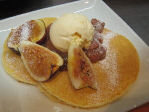 今日は、何度も通り雨がある変なお天気でしたが、ご来店には恵まれて、たくさんイチジクが減りました。写真はパンケーキのいちじくスペシャル。いちじくソース、いちじくブリュレ、自家製バニラアイスが乗ってます。パフェのイチジクよりも大き目のものを乗せてます。明日も10時~18時までお待ちしています!