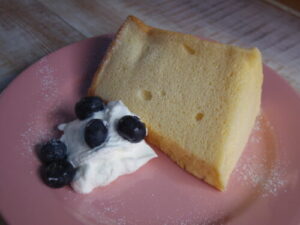 京都ファミリーのわくわく広場で買ったシフォンケーキ。これはコラボカフェのもの。ちょっと台湾カステラっぽい味わいもあって、美味しい。
