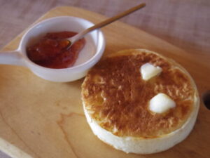 カフェで余ったクランペットをうちのジャム塗って。