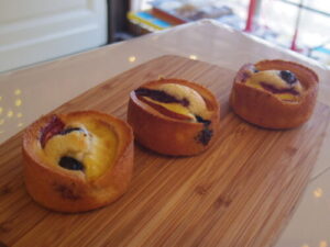 今日は今年一番の電力使用量が更新された暑さマックスな一日でした。ご来店もぐっと少なかったのですが、今日は100%初来店のお客様ばかりで、珍しい一日でした。皆さん楽しそうに過ごして下さり、またご来店頂けるといいなーっと思ってます。写真はネクタリンとブルーベリーのフィナンシェ。ネクタリンはすももよりも水分が少ないので、生地の事をあまり心配せず焼きこめるなーっと。ブルーベリーも国産のが手に入るうちは、色々と使いたいなーっと思ってます。