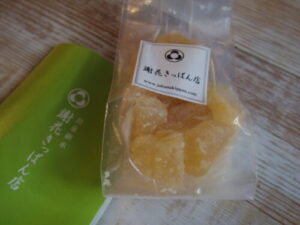 カフェにご来店頂いたA様からは沖縄のお土産。冬瓜の砂糖漬けのお菓子で、シークワーサー風味。お茶受けにピッタリなお菓子で、熱い日本茶やジャスミンティーと合わせて頂きました。
