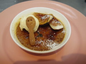 紅茶のクレームブリュレは、ミルクティに使っているキャンベルズパーフェクトティーを濃く抽出してから使ってます。適度に渋みも出ているので、上に小さなバニラアイスを乗せて一緒に食べると美味しくなるようにしました。イチジクは砂糖をかけてバーナーでキャラメリゼして後乗せしました。クレームブリュレは、大好きなお菓子なので、色々なフレーバーを作れたらなーっと思っています。今のところバリエーションは、バニラ、焼き芋、和栗、ピスタチオ、コーヒーラムレーズン、ほうじ茶、紅茶と7種類です。12種類出来たら月に1回出せるのにーっと。