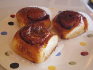 今日はチェルシーバンズを焼きました。イギリスの菓子パンで、具が巻かれたシナモンロールって感じなのですが、表面がテカテカ、ベタベタ仕上げじゃないとーっと自家製の杏ジャムで仕上げました。
