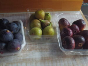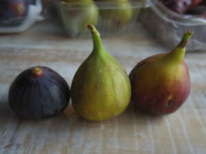 イートンメスは3種のイチジクと、紅茶のクリーム、メレンゲ、自家製バニラアイスを重ねます。左からビオレソリエスという黒いちじく、京都の白無花果と城陽のいつものいちじくを使います。