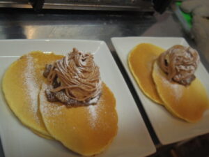 パンケーキのマロンスペシャルは、フランス産のマロンペーストを使ったマロンクリームとイタリア産のマロングラッセで作った餡をバニラアイスと一緒に乗せてます。明日も10時~18時までお待ちしています!