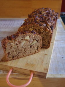 アップルシナモンブレッドは、ケーキよりも甘さが控えめ。イギリスのレシピなのだけど、作り方はめっちゃ大胆で、シナモンときび砂糖をまぶした林檎を生のまま、出てきたたくさんの果汁ごとケーキ生地に乗せて焼きます。紅玉はシャキシャキとして、朝ごはんにもぴったりです。