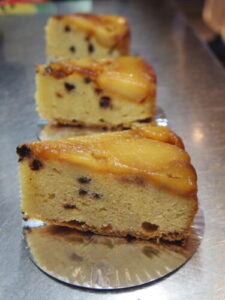 写真は洋梨とチョコチップのアップサイドダウンケーキ。洋梨は先にキャラメルソテーしてから型に敷いて焼いてます。ちょっと涼しくなったので、いつもの軽めの食感のケーキ生地ではなく、しっとり感のあるパウンドケーキ寄りの生地で作りました。