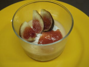 いちじくと紅茶のパンナコッタ。いちじくが美味しい時期ですもんねー。城陽のいちじく、めっちゃ状態良いやつを使えてるので、嬉しいです。紅茶のパンナコッタの上にイチジクのソースといちじくを乗せてます。