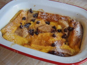 食パンの端っこでブレッドプディング。洋梨とチョコチップ入り。フルーツサンド作った後の切り落としを使って。朝ごはんにする事も多いけど、この日はオヤツにしたので、チョコ入り。