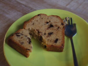 お店で販売してるヘーゼルナッツチョコケーキ。パウンドケーキ系は、焼いた時と袋詰めしてしばらく経った時とで、味も食感も変わってくるので、賞味期限ちょうどくらいの時にもおやつとして試食する。紅茶よりもコーヒーに良く合う味。美味しく出来てました。