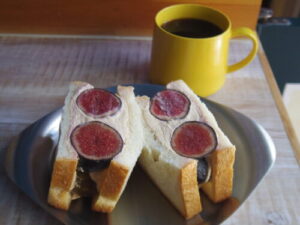コネルヤの山食パンで、いちじくと紅茶クリームのサンド。佐渡島の黒無花果、ビオレソレオスを贅沢に使いましたよ。丸ごと6個入ってるので、半分でお腹いっぱいになったので、次の日のおやつに半分残したけど、次の日はパンがしっとりして別の美味しさがあった。