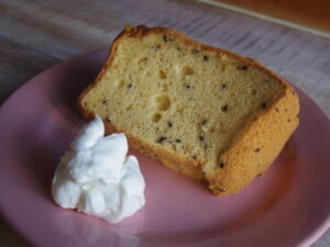 京都ファミリーのわくわく広場で買った、きなこ胡麻シフォンケーキ。カフェで生クリームが余ると嬉しくて、生クリームを美味しく食べられるお菓子を選んじゃう。