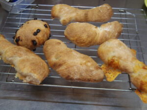 写真はねじねじパン。フランスパンっぽい生地で、成形はねじねじして、クープは入れないっていうレシピだったのだけど、結構良い感じだった。凄い手軽に作れるし、家でこれ作れるならバゲットは買わなくていいかも、くらいの感じ。全部同じ味にすると飽きそうだったので、枝豆とチーズ入れたのと、何も入れないのと、チョコチップ入れたのをちょっとずつチマチマ作りました。