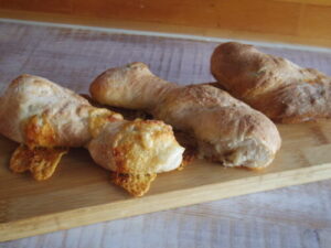味見で2個くらい減ってる状態。綺麗な形じゃないのだけど、味はこれ家で作れるなら、かなりいい。バゲットって朝パン屋さんに無かったりするから、夜仕込んで2次発酵無しで朝焼けるし、朝食べたい時にいいかも。