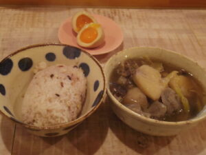 雑穀ご飯、芋煮、味玉。ホントに何一つ夕飯を用意する気力が無かった日で、味玉あって良かったー。2日前の自分に感謝!の夕飯だった。