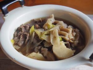 ずっと食べてみたかった芋煮に初挑戦。ほうとう、せんべい汁、きりたんぽ鍋と年一でやってる郷土鍋シリーズ、今冬は山形の芋煮。メニューは、芋煮と新米の塩にぎり(丹後の黒米入り)。