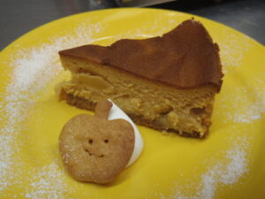 林檎とキャラメルのベイクドチーズケーキ。ほろ苦いキャラメルチーズケーキに甘酸っぱい紅玉が良く合います。