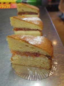 写真はいちじくジャムとバタークリームのビクトリアケーキ。卵を使ったこっくりとしたバタークリームと、濃厚でぽってりとしたイチジクジャムを、パウンドケーキ生地でサンドしています。