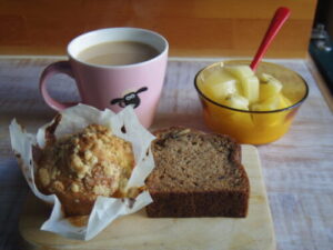 カフェで余ったお菓子達、ゴールドキウイヨーグルト。