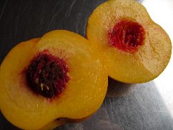 黄金桃の果肉はマンゴーのようなオレンジ色。そして、味もマンゴーにちょっと似てて、ねっとりと甘く果汁も多い。種が深紅で綺麗。高価な果物なので、つまみ食いはほんのちょっとだけ(笑)。出来るだけジャムにして皆さんに食べて頂かねば!という気持ちが大きい。