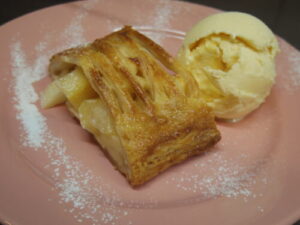 アップルパイはオーダー頂いてから温めて、自家製バニラアイスを添えてお出ししています。