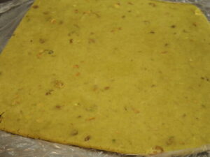 発送用のピスタチオクッキーの生地。焼く前は綺麗なグリーンなんだけど、焼いたら茶色くなる。ヘーゼルナッツクッキーのピスタチオバージョン。