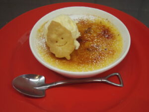 焼き芋クレームブリュレは、オーダー頂いてからバーナーでキャラメリゼして、自家製バニラアイスを小さく乗せてます。