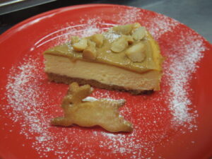 マカダミアナッツとトフィーのチーズケーキは、ウサギクッキー添えました。明日も10時~18時までお待ちしています!