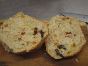 自家製オレンジピール、ラム酒に漬けたドライクランベリーとレーズン、シナモンやクローブ、カルダモンなどのスパイスが入ってます。