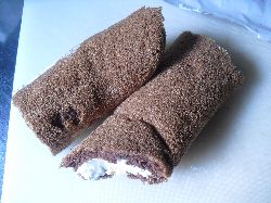 ロール生地はシュワシュワと口に入れると溶ける食感で、すごーく扱いづらい。そーっとそーっと移動させて巻いていく。冷蔵庫に移す時もハラハラしながら。